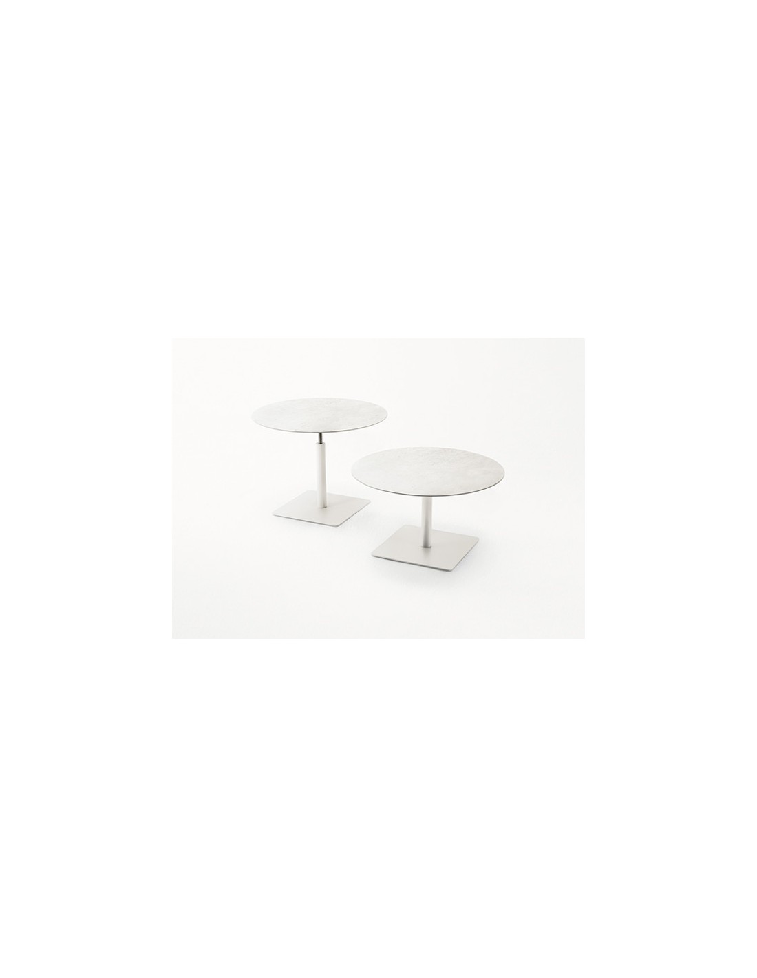 Paola LentiTavoli con piano regolabile in altezza (B58A) o fisso (B58E e B58F). La serie Giro comprende anche tavolini disponibili nelle stesse finiture. Base: alluminio verniciato opaco n