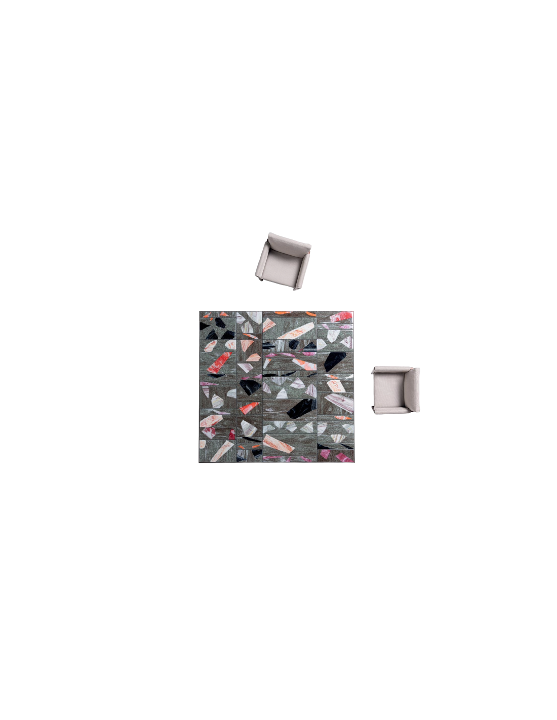 Tavoli da pranzo. La serie Sciara comprende anche tavolini e consolle disponibili in diverse dimensioni. Struttura: acciaio inox AISI 304 verniciato opaco in color grigio lava o verniciato lucido (colori di riferimento: campionario legno Mano Lucida). Puntali in materiale plastico. Superficie di appoggio: alveolare di alluminio, verniciato opaco o lucido in abbinamento al colore della struttura. Piano: composto da più elementi in lava con decoro in vetro.