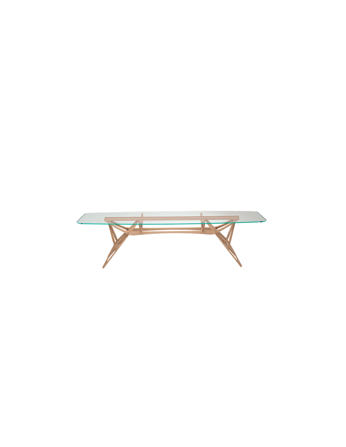 Reale CM di Zanotta - Tavolo. Struttura in massello di rovere naturale o verniciato nero, oppure in massello di noce canaletto naturale; vernice rifinita con cera. Piano in vetro extrachiaro di 15 mm di spessore, con bordi tagliati inclinati, o piano in vetro lastra grigio fumo di 12 mm di spessore, con bordi tagliati inclinati, in tinta con la struttura in rovere nero . Un tavolo dalla struttura in legno massello organica, solida e leggera, come fosse il dettaglio di un'ala di un aeromobile. Un sapiente uso della tecnica costruttiva è ben visibile nella struttura a cavalletto e nel gioco di incastri e tiranti impiegati a sostegno un'ampia gamma di piani in cristallo. Esistono molte varianti di questa idea di tavolo e una di queste fu disegnata per la Società Reale Mutua Assicurazioni. Homage to Carlo Mollino