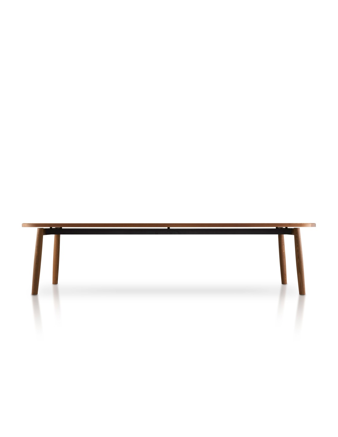 PorroGalileo è il tavolo in legno Porro dalle linee organiche e dai toni naturali. Con piano ovale in massello, dalla plasticita unica, retto da 4 gambe tornite dallo spessore importante, Galileo sceglie tra le nuove essenze il frassino termotrattato e il frassino tinto nero, morbide venature ad onda che emergono da una base scura e intensa.
