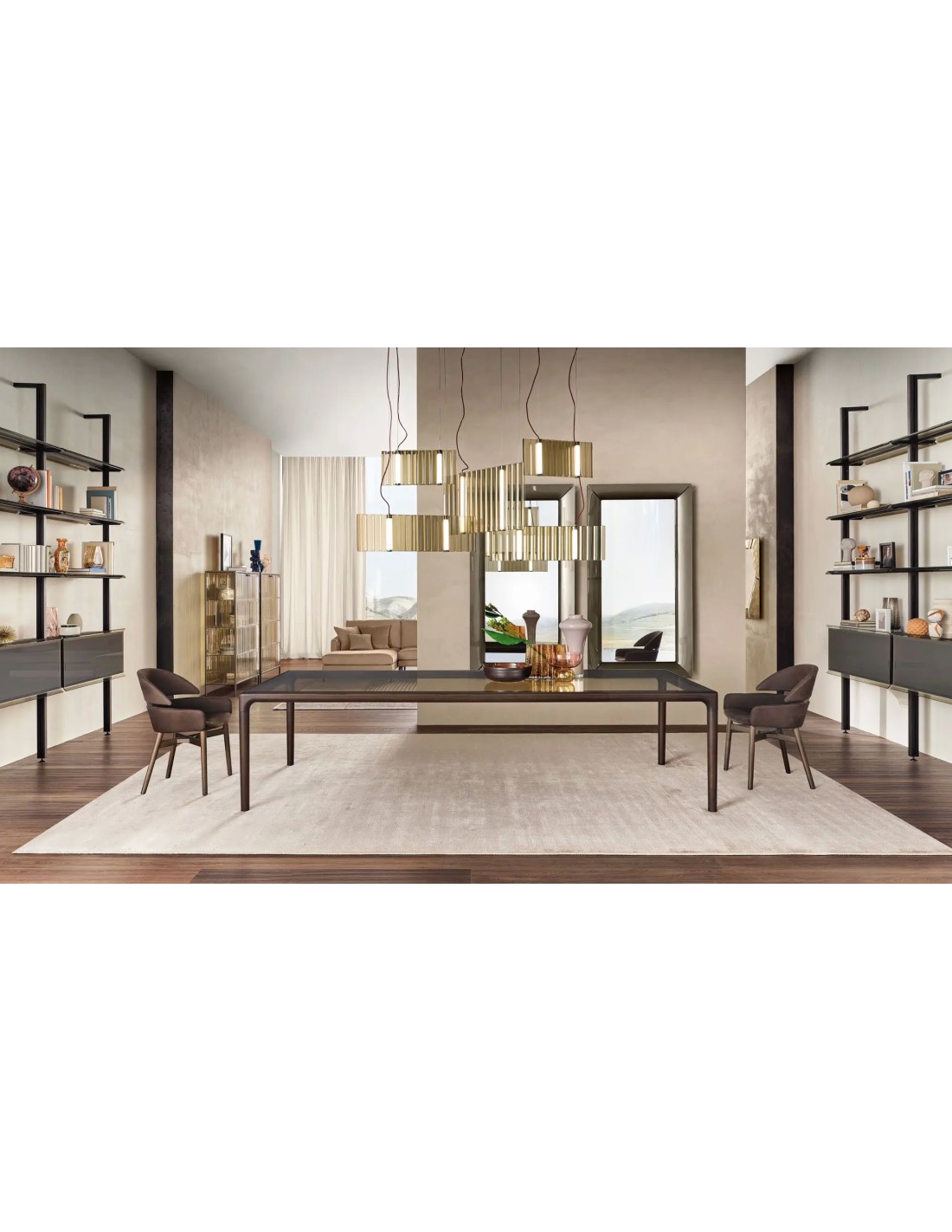 Questo straordinario tavolo Vertige Fiam incarna la filosofia progettuale dell'eccellenza italiana applicata alla lavorazione del vetro in combinazione armoniosa con il legno massello.