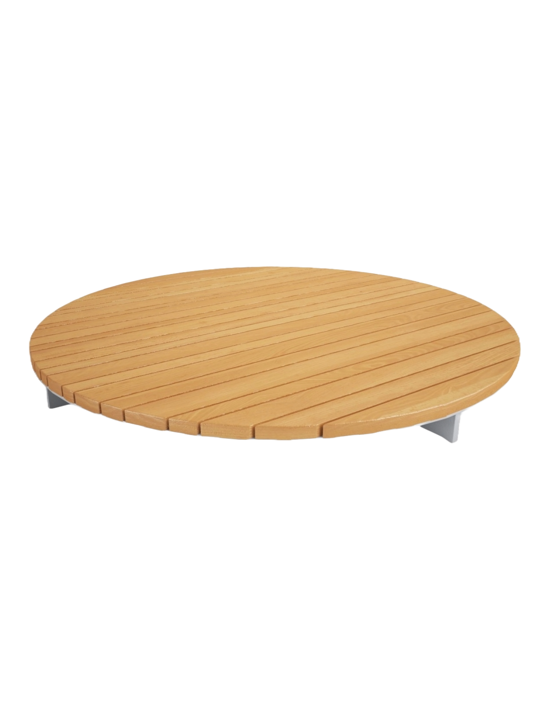 Il tavolino Sunset è disegnato da Francesco Rota per Paola Lenti con struttura in acciaio trattato con cataforesi e verniciato nei colori avorio, grafite o wengè, con puntali in materiale plastico.