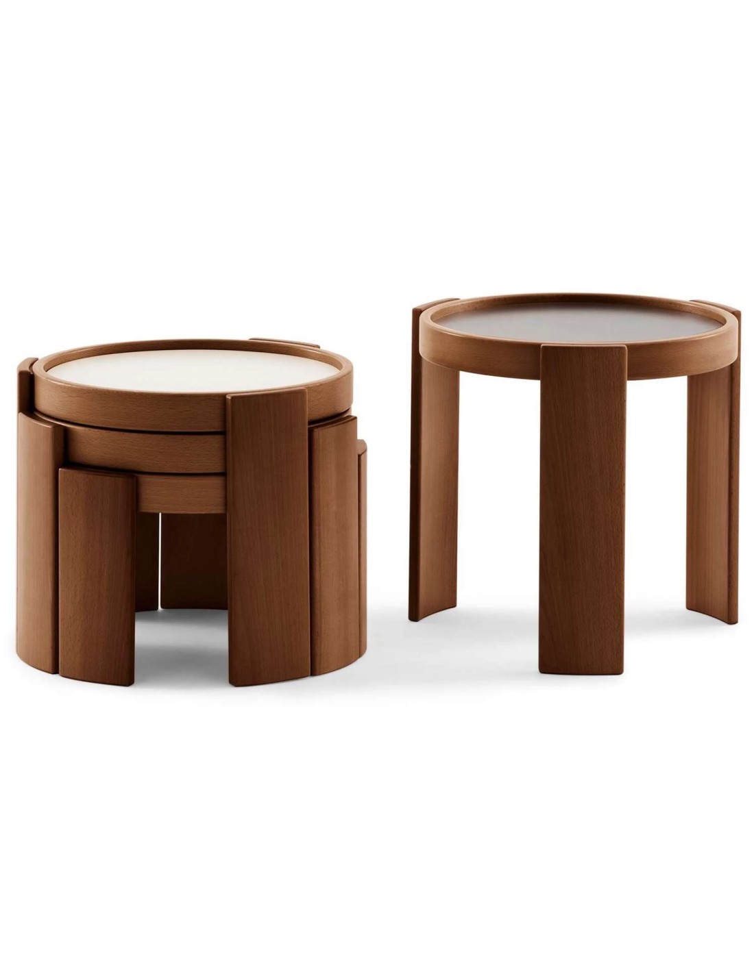 CassinaLa serie di tavolini rotondi disegnata da Gianfranco Frattini è un emblema del design italiano degli anni '60, epoca fortemente orientata all'ottimismo e alla ricerca sperimentale nell'ottica della funzionalità assoluta.