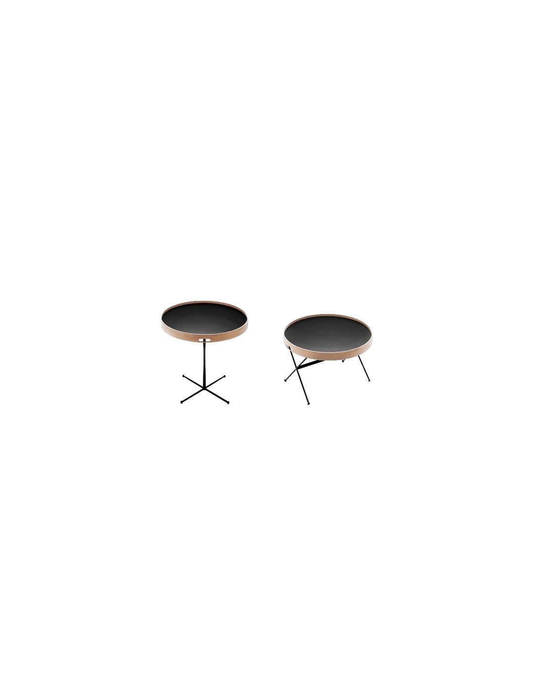 Una struttura leggera, che si può modulare in due altezze diverse per una massima flessibilità: il piano nero, con bordo in faggio curvato, è appoggiato a una base tubolare esile e allo stesso tempo stabile. Il piano è un vassoio che può vivere anche in autonomia.