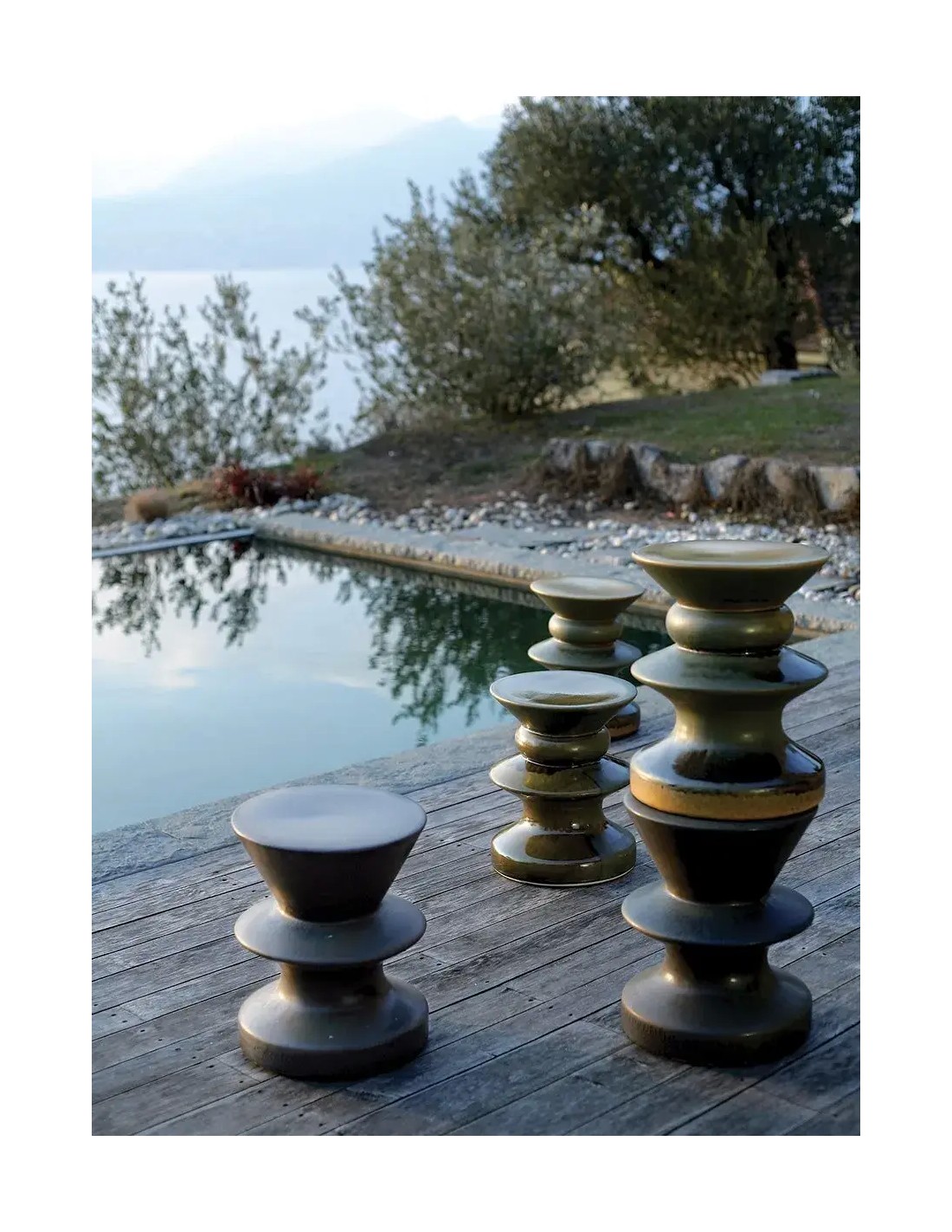 ZanottaZeus di Zanotta - Tavolo occasionale. Telaio antigelo in grès fine porcellanato per uso esterno con due strati a spessore controllato applicato a mano e cotto a 1250°C con un ciclo di lavorazione di 36 ore, colore blu-marrone.