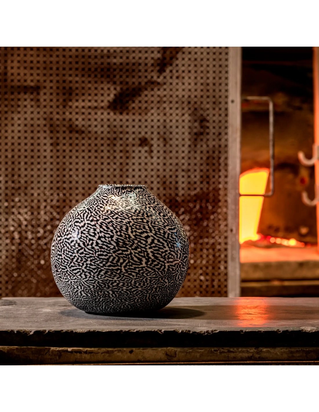 VeniniQuesta fantasia di Murrine esalta la forma del vaso e “Dama”. Il disegno grafico valorizza l’arte vetraria di Venini.